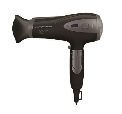 Фен Esperanza — це пристрій, який ідеально підходить для кожної людини, яка цінує час і доглянутий зовнішній вигляд. Він має високу потужність, завдяки чому волосся швидко й ефективно висушується. Крім того, він обладнаний 3 рівнями контролю температури, 2 рівнями повітряного потоку та функцією холодного повітря. Функція іонізації запобіжить їхньому накачку й електризації. Дифузор, прикріплений до набору, буде справлятися з підняттям волосся від кореня, а вузький концентратор забезпечить інтенсивне продування одиничних смуг.